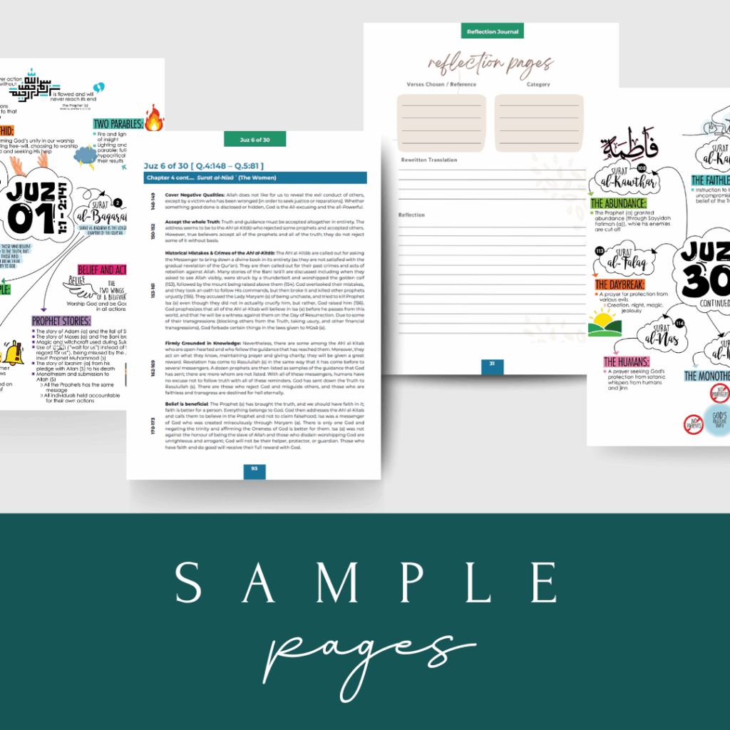 - Worksheets exploring key Qur’anic themes and topics & reflection journal pages